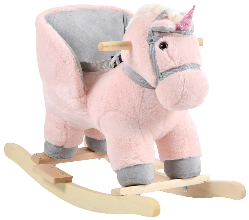 Het hobbeldier is een eenhoorn in het roze, als je kleine in de oren drukt zal de eenhoorn geluid maken. Je kindje kan zich vasthouden aan de houten handvatten en dankzij de voetensteunen kan je kleine zijn/haar voeten goed kwijt. Geschikt voor kindjes vanaf 12 maanden.