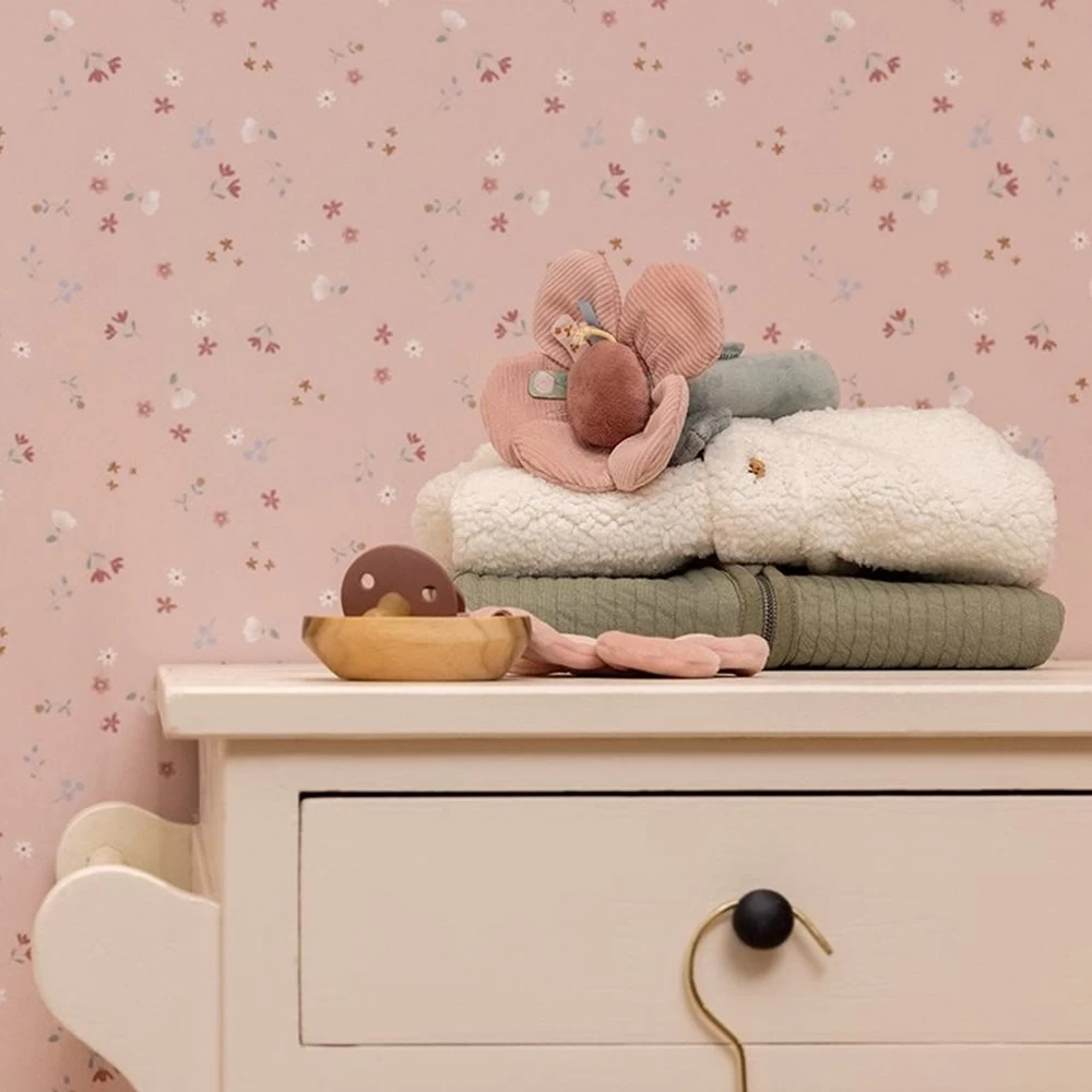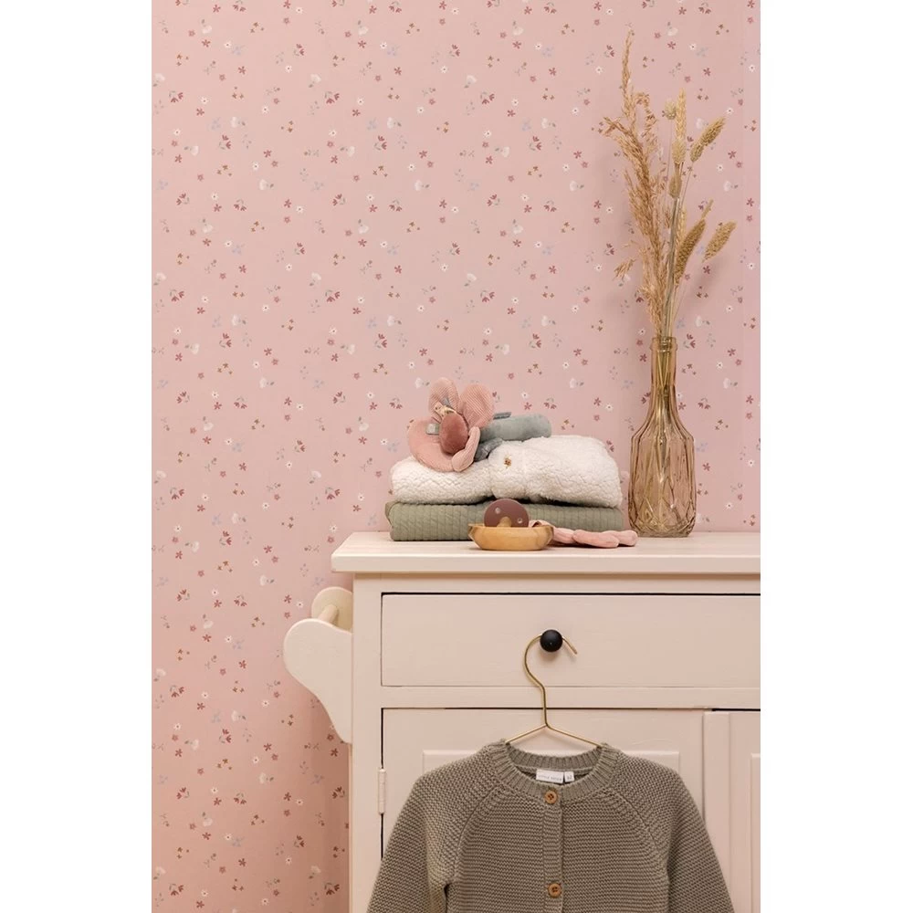 Een bloemenwand creëren in de baby- of kinderkamer? Dit lieflijke behang uit de collectie Little Pink Flowers tovert de kamer om tot een bloeiende boomgaard. Het dromerige bloemendessin heeft een zachtroze achtergrond met overal kleine bloemetjes in warme tinten. Het haalt het buitenleven echt naar binnen. Een prachtige sfeer voor je kleintje om in weg te dromen. Dit behang is gedrukt op vliesbehang, heeft een breedte van 300 centimeter en een lengte van 280 centimeter. Het behang Little Pink Flowers combineert prachtig met de volgende kleuren uit de Little Dutch muurverf collectie: Light Blue, Pure Pink, Faded Pink, Pure Rust en Faded Rust. Waarom kiezen voor digitaal behang? Om je wand gemakkelijk en snel een trendy metamorfose te geven kies je voor digitaal behang! Digitaal behang (oftewel fotobehang) is een digitaal gedrukt beeld wat in vooraf gedefinieerde behangbanen is verdeeld. Dit maakt het behang zeer gemakkelijk aan te brengen omdat er in tegenstelling tot veel regulier behang geen patroon gezocht hoeft te worden. Je kunt het behang gemakkelijk per baan in de aangegeven volgorde op de muur plakken. Dit fotobehang is gedrukt op kwalitatief hoogwaardige vliesdrager. Hierdoor is er geen behangtafel nodig en kun je de behanglijm direct op de muur aanbrengen en het behang direct op de muur verwerken. Ook is het vliesbehang gemakkelijk weer te verwijderen, er is geen stoomapparaat nodig en er blijven geen resten achter.
