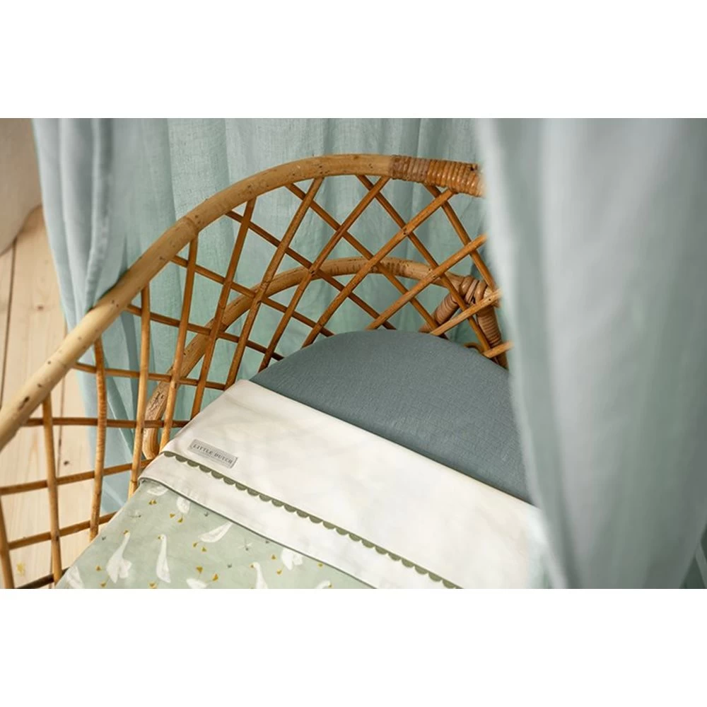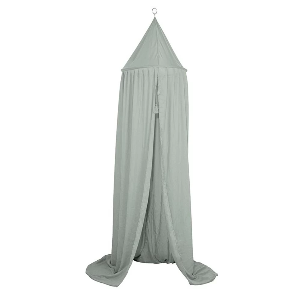 Creëer een gezellige slaap- of speelruimte met deze prachtige klamboe. Door hem als hemel aan het plafond te hangen, krijgt een babykamer een prachtige sfeer. De klamboe geeft je baby een geborgen en comfortabel gevoel en zal voor nachten vol heerlijke dromen zorgen. Plaats de klamboe boven een zachte speelmat of vloerkleed en het verandert in een magische speeltent. Het ziet er prachtig uit in een kinderkamer en je kleintje zal dol zijn op de knusse hoek om in te spelen of te lezen. De klamboe is verkrijgbaar in 8 prachtige kleuren en combineert mooi met onze textielcollectie en vloerkleden. In de lichte stof is hoepel verwerkt en de bovenkant is voorzien van een koord voor eenvoudige bevestiging. De twee kleine kwastjes geven een klein beetje extra detail, maar je kunt de klamboe ook versieren met een dromenvanger, mobiel of iets zelfgemaakt zoals een slinger. Zorg ervoor dat de klamboe veilig hangt en houd rekening met de ontwikkeling van je baby om te voorkomen dat je kindje verstrikt raakt in de stof. Een klamboe is fijn voor een baby omdat het een geborgen gevoel geeft. Het staat ook mooi in het kamertje van de baby. De klamboe is er in allerlei kleuren, dus er is altijd één die in jouw babykamer past.