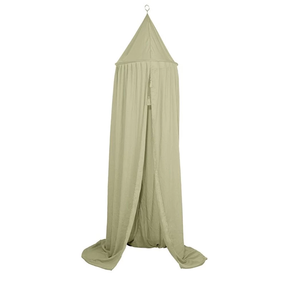 Creëer een gezellige slaap- of speelruimte met deze prachtige klamboe. Door hem als hemel aan het plafond te hangen, krijgt een babykamer een prachtige sfeer. De klamboe geeft je baby een geborgen en comfortabel gevoel en zal voor nachten vol heerlijke dromen zorgen. Plaats de klamboe boven een zachte speelmat of vloerkleed en het verandert in een magische speeltent. Het ziet er prachtig uit in een kinderkamer en je kleintje zal dol zijn op de knusse hoek om in te spelen of te lezen. De klamboe is verkrijgbaar in 8 prachtige kleuren en combineert mooi met onze textielcollectie en vloerkleden. In de lichte stof is hoepel verwerkt en de bovenkant is voorzien van een koord voor eenvoudige bevestiging. De twee kleine kwastjes geven een klein beetje extra detail, maar je kunt de klamboe ook versieren met een dromenvanger, mobiel of iets zelfgemaakt zoals een slinger. Zorg ervoor dat de klamboe veilig hangt en houd rekening met de ontwikkeling van je baby om te voorkomen dat je kindje verstrikt raakt in de stof. Een klamboe is fijn voor een baby omdat het een geborgen gevoel geeft. Het staat ook mooi in het kamertje van de baby. De klamboe is er in allerlei kleuren, dus er is altijd één die in jouw babykamer past.