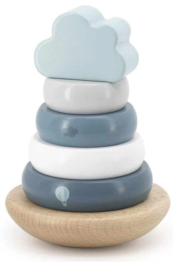 Wat zal jouw kleintje veel speelplezier beleven met deze houten tuimelringpiramide van Label Label! Deze stapelpiramide bestaat uit 6 verschillende onderdelen met zachte pastelkleurtjes. Het wolkje bovenop maakt het af!