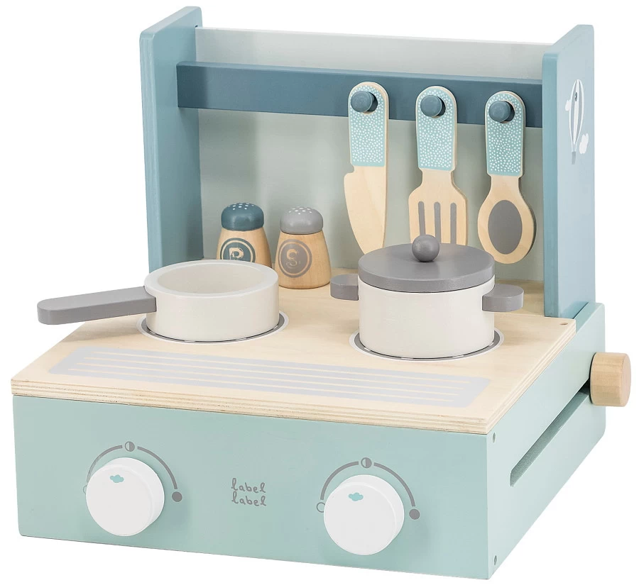 Je kleine zal zich een ware chef voelen als hij/zij aan het koken is op dit houten kookstel van Label Label! Deze compacte set heeft 2 kookpitten met draaiknoppen om ze in te stellen. Daarnaast is de set uitgerust met een steelpannetje, pannetje, peper- en zoutstel, een mes, spatel en een opscheplepel.