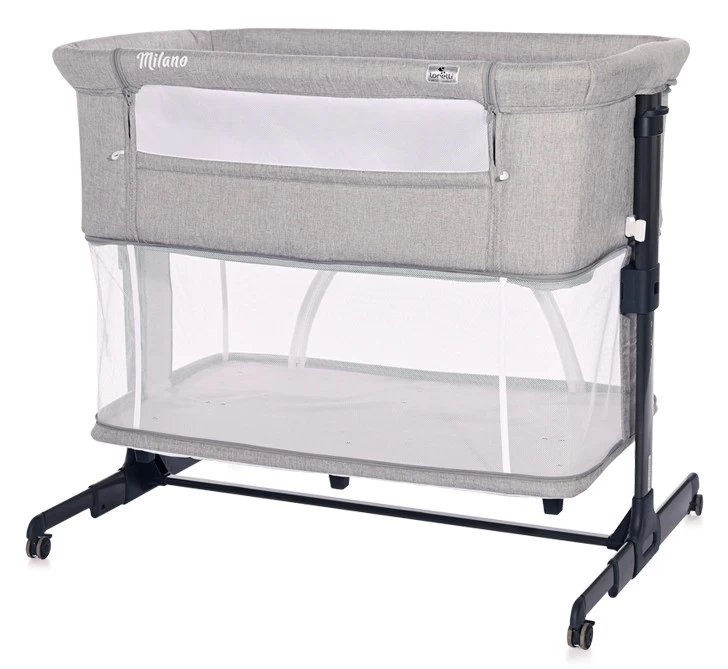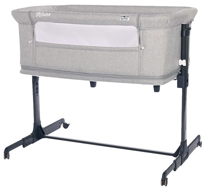 Danzij de zijkant van mesh stof kun je je kindje goed in de gaten houden. Ook is het mogelijk om de zijwand van het wiegje op te rollen, vast te zetten en het wiegje aan je eigen bed aan te laten sluiten. Bevestig het wiegje dan met de meegeleverde banden aan je eigen matras. Het wiegje is op 5 hoogtes (50-64 cm) in te stellen, zodat het vrijwel aan ieder bed past. Tevens is het mogelijk om de hellingshoek aan te passen zodat je kindje met zijn/haar hoofdje wat hoger ligt, bijvoorbeeld wanneer je kleine verkouden is. De Lorelli Milano heeft wieltjes met remmen en verstelbare poten aan één kant, zo is hij makkelijk te verplaatsen en sluit hij altijd goed aan aan het grote bed.