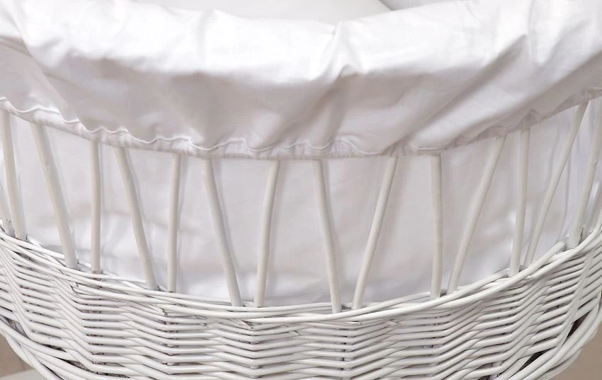 Schitterende luxe handgemaakte wieg op wieltjes. De rotan mand is netjes in de kleur wit afgewerkt en staat op een stevig onderstel. De babywieg wordt compleet uitgeleverd incl: binnenbekleding, sluier, matras en onderstel op wieltjes. De wieg is netjes afgewerkt met een romantische babystrik aan de bekleding. Het wiegje kan vastgezet worden met de rem op de wieltjes.