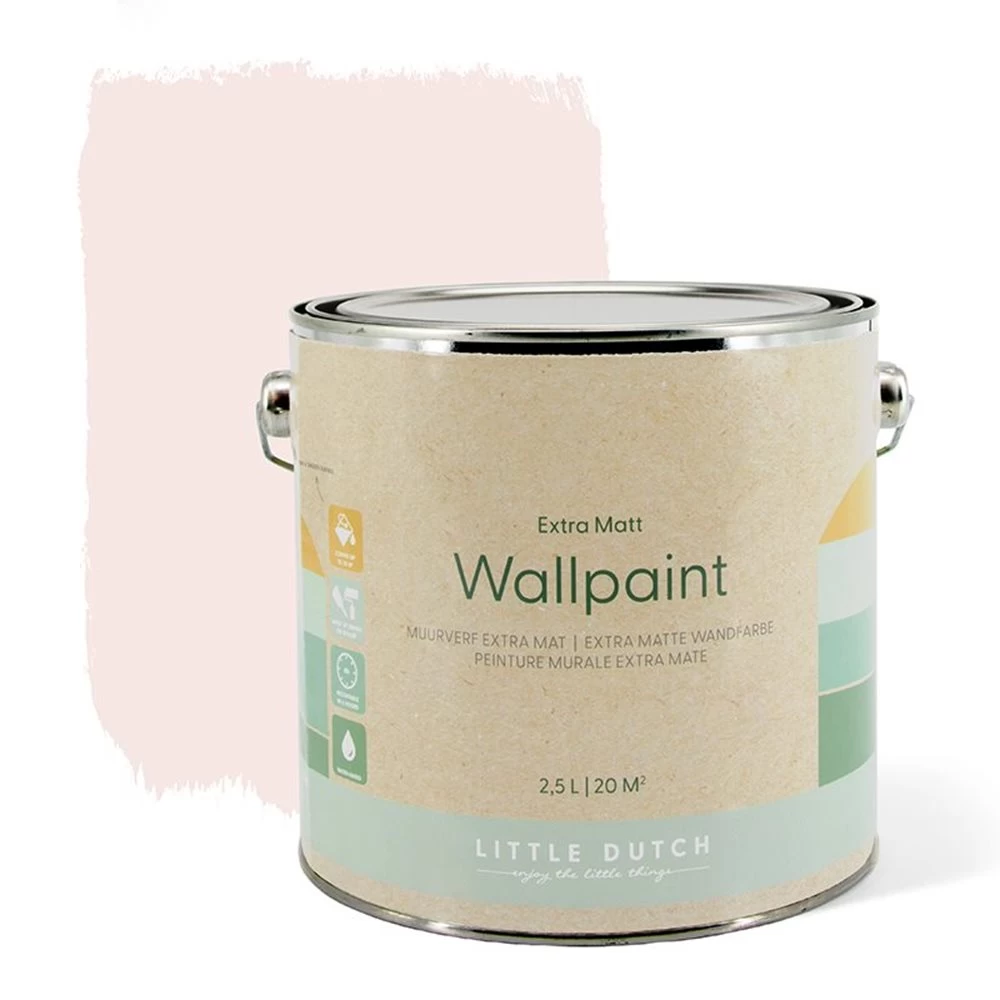 De Little Dutch muurverf extra mat Adventure Pink is onderdeel van een actueel kleurenpallet. Alle kleuren matchen bij de laatste collectie van Little Dutch om je baby- of kinderkamer helemaal af te maken. De kleuren hebben een grijze ondertoon en passen bij de rustige Scandinavische uitstraling. Prachtige zachte tinten zoals blauw, mint, roze, mauve, beige en grijs. De dekkende muurverf heeft een mat luxueus effect. De matte muurverf is ook geschikt op hout en krijgt de uitstraling van krijtverf.