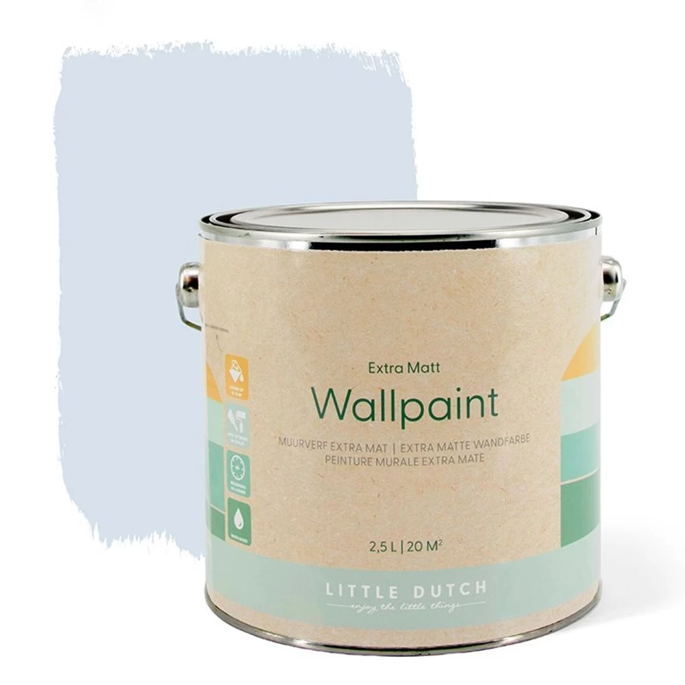 De Little Dutch muurverf extra mat Light Blue is onderdeel van een actueel kleurenpalet. Alle kleuren matchen bij de laatste collecties van Little Dutch om je baby- of kinderkamer helemaal af te maken. De kleuren hebben een rustige ondertoon, een mat luxueus effect en zijn geschikt voor hout.