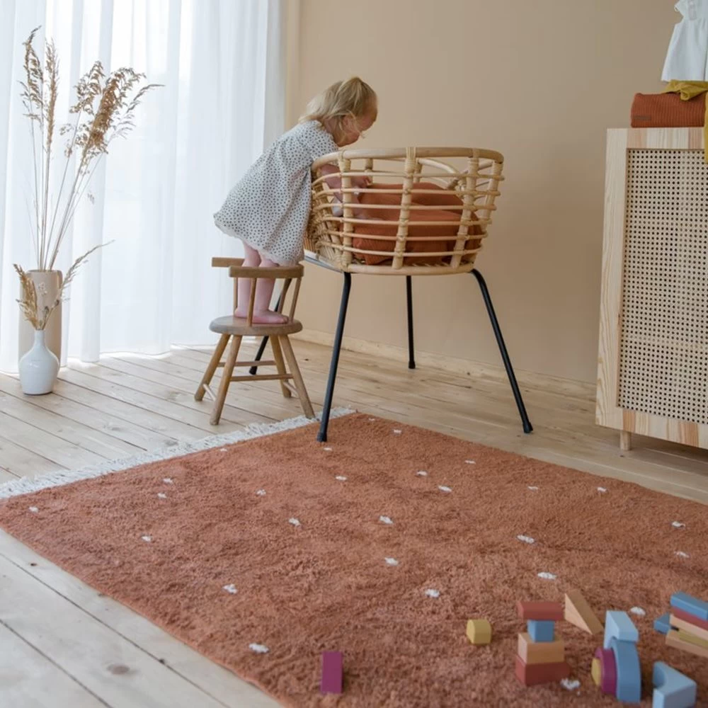 Met het Dot Pure vloerkleed van Little Dutch voeg je warmte en stijl toe aan de babykamer of kinderkamer. Dit vloerkleed uit de Dot collectie heeft de basiskleur roestbruin en met stippen in de natuurlijke kleur gebroken wit. Elk vloerkleed is uniek! Het kleed verbindt de kamer en past prachtig bij veel Little Dutch producten, zoals het textiel uit de Pure collectie en het houten speelgoed uit de Pure & Nature collectie.