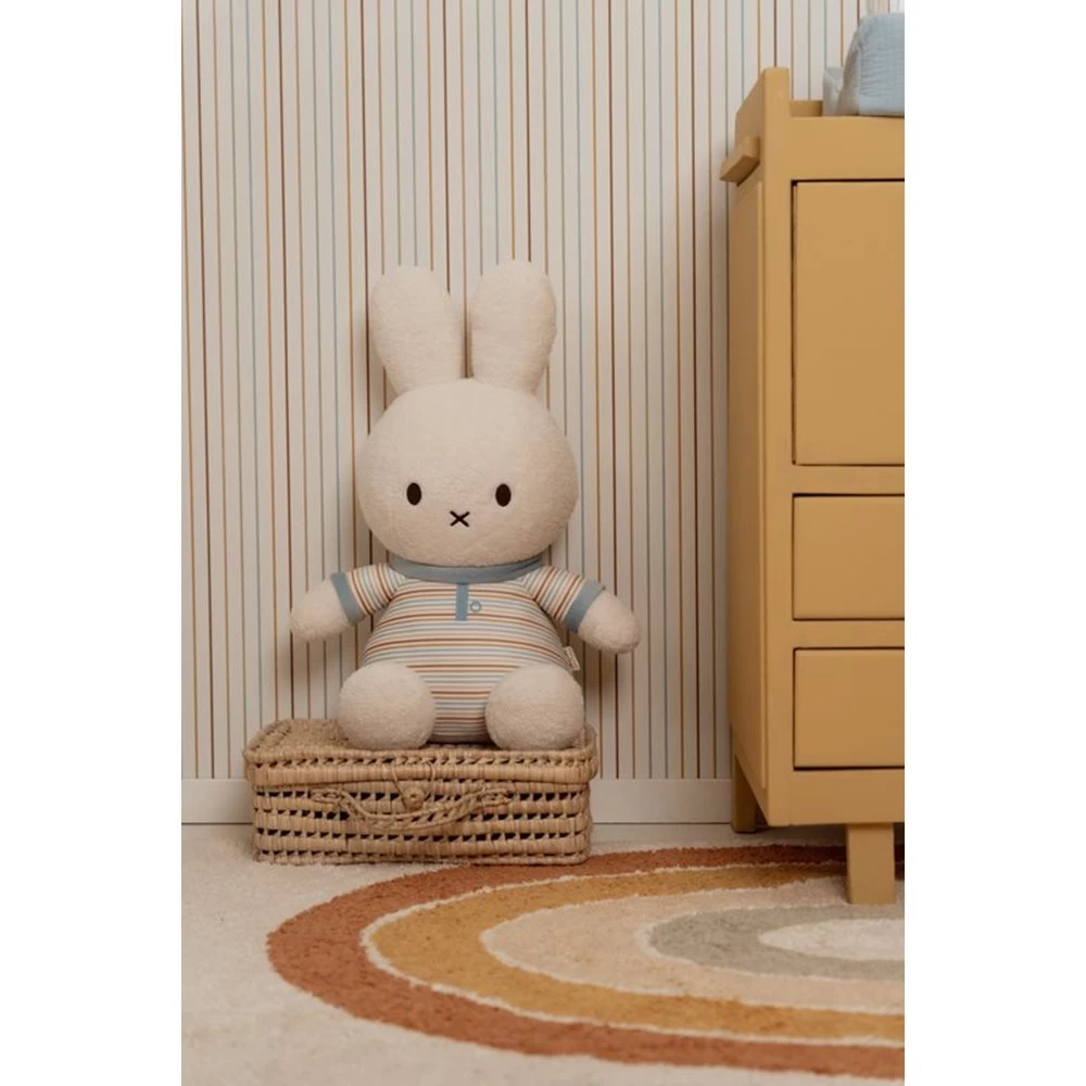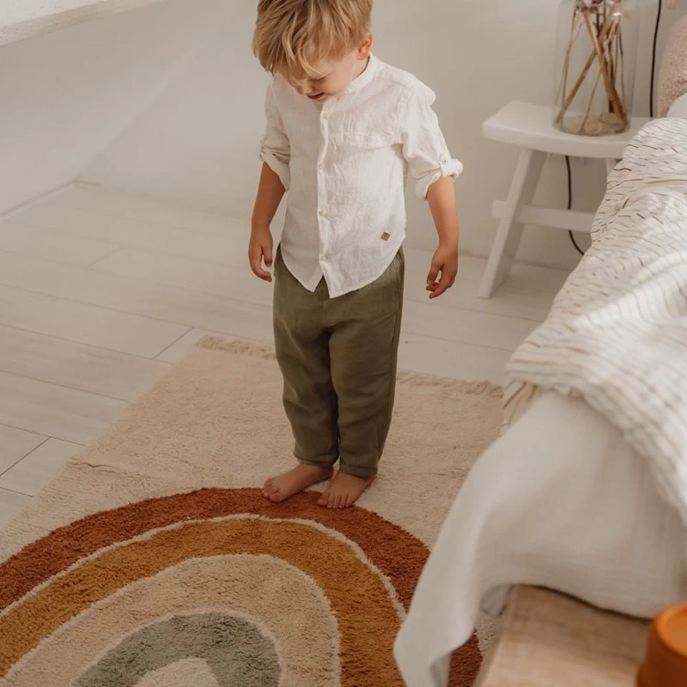 Voeg warmte toe aan de kinderkamer met een vloerkleed van Little Dutch! Deze uit de Vintage collectie heeft een natuurlijke kleur met prachtige regenboog opdruk in vintage stijl. Het vloerkleed is rechthoekig, 130 bij 90 cm. en aan de smalle zijdes afgewerkt met speelse kwastjes. Gemaakt van 100% gerecycled katoen en kan gewassen worden in de wasmachine op 30 graden.