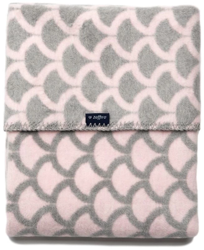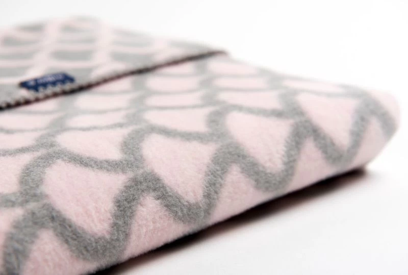 Het wiegdeken is aan de ene kant grijs met een ‘schubbenmotief’ van halve cirkels in lichtroze en aan de andere zijde zijn de kleuren omgekeerd. Het dekentje heeft de afmetingen 75 x 100 cm, dus past perfect in de meeste wiegjes!